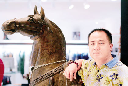 今年年初,陳鋼的第一家服飾店熱熱鬧鬧地開業了,慶賀花籃一直擺到了商場大門口,讓人誤以為是商場開業。店門口立著兩匹銅馬,店內衣、帽、鞋、包、太陽鏡、皮帶、金銀首飾一應俱全。