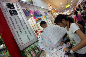 臨近開學的學生們在選購各種文具的同時,也精心為“教師節”挑選賀卡禮物。 北京各批零市場的商家已瞄準了開學經濟與教師節禮品的“黃金商機”,準備了充足的貨源供消費者選購。商報記者 暴帆/文并攝