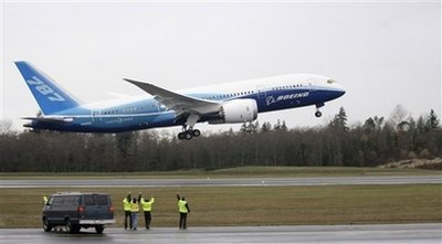 “夢想”787客機是1995年以來波音公司首次推出的全新機型,碳纖維合成材料的使用讓其比傳統的鋁質材料客機更輕,更節能。