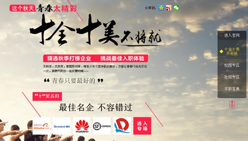 近期,為應對2015年秋季招聘高峰,測聘網開通全新的校招頻道,并率先啟動了主題為“十全十美不將就”的秋季大型招聘活動,據內部人士透露,校招活動的重頭戲“名企校招團”吸引了安踏、美聯等50家名企加盟,“測評+招聘”的結合大大縮短了零經驗畢業生入職名企的距離。